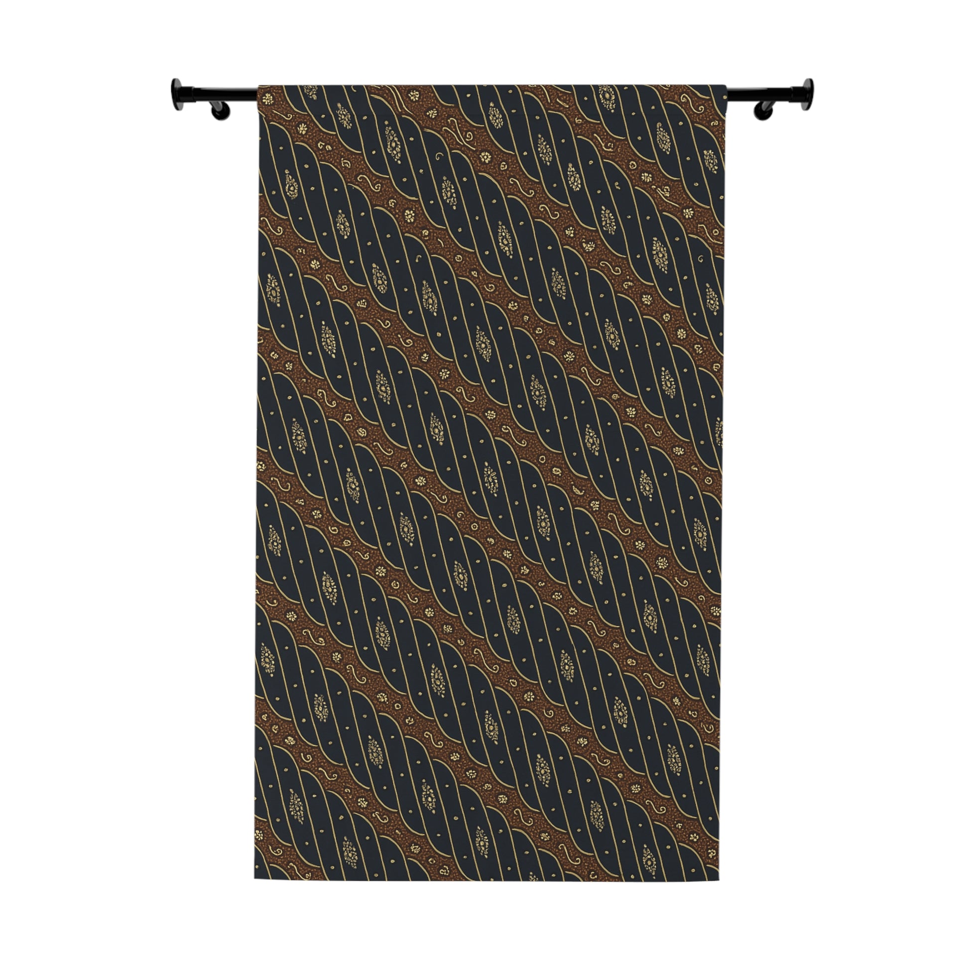 Bring museum-grade heritage into everyday living with this batik curtain inspired by Parang Rusak Barong—a royal Javanese court pattern once classed as a “forbidden motif” (reserved for nobles only). The diagonal, wave-like S forms symbolize disciplined strength and steady continuity, flowing at a refined 45° so the repeat reads beautifully on a full window. The palette—deep indigo, warm brown (sogan), and soft off-white—adds a calm, boho-meets-classic vibe often grouped under global/“ethnic” decor.