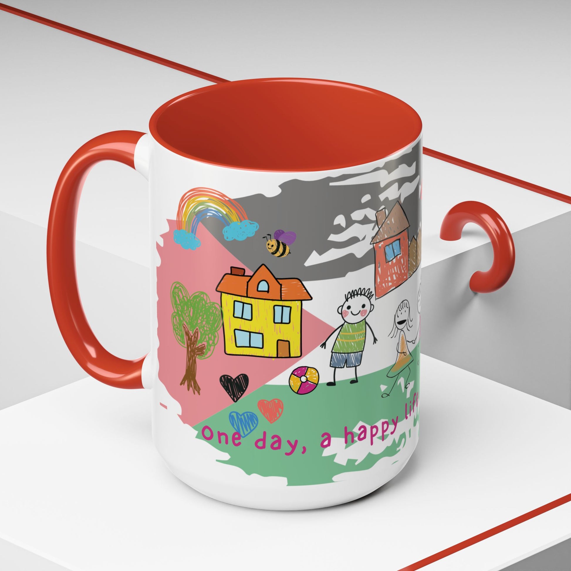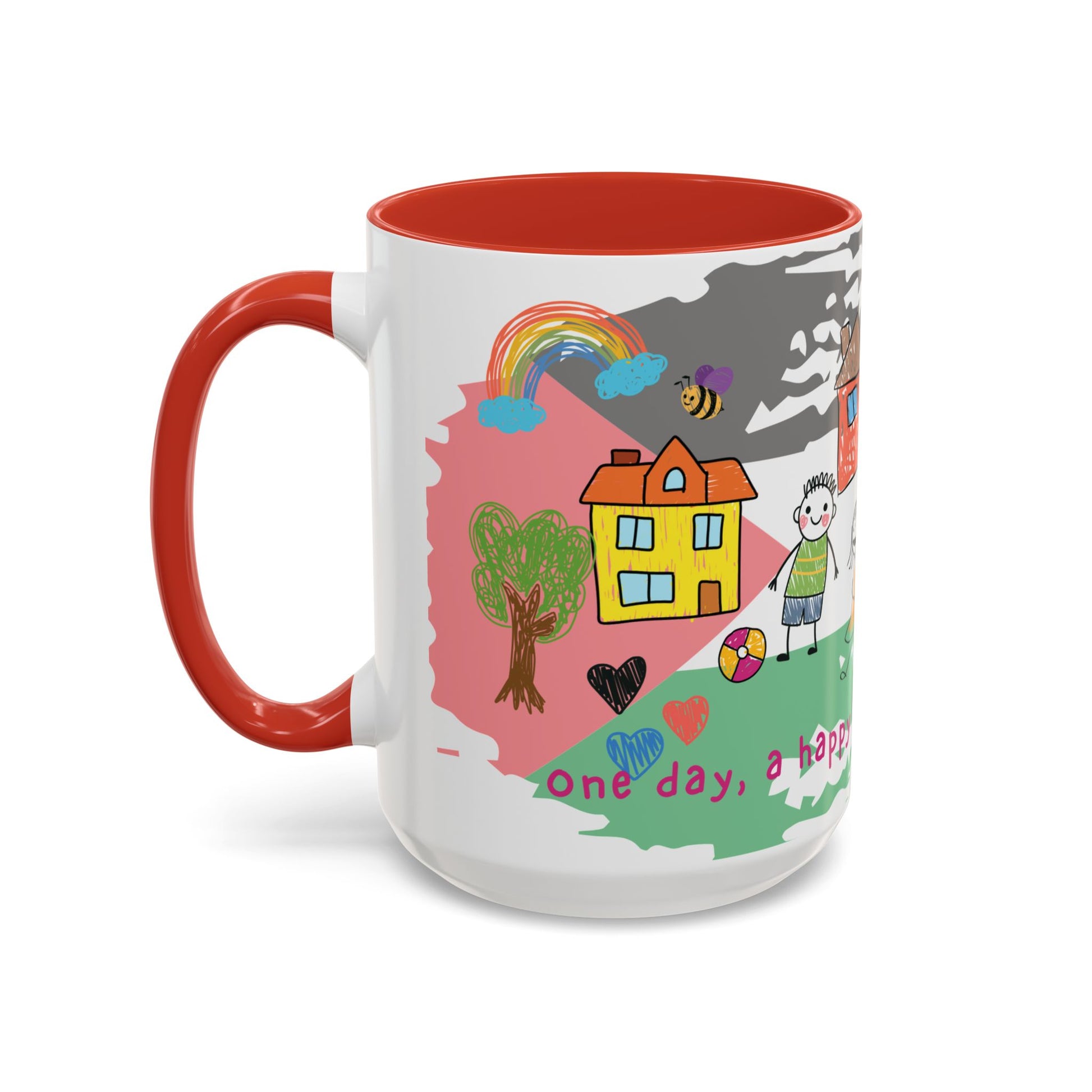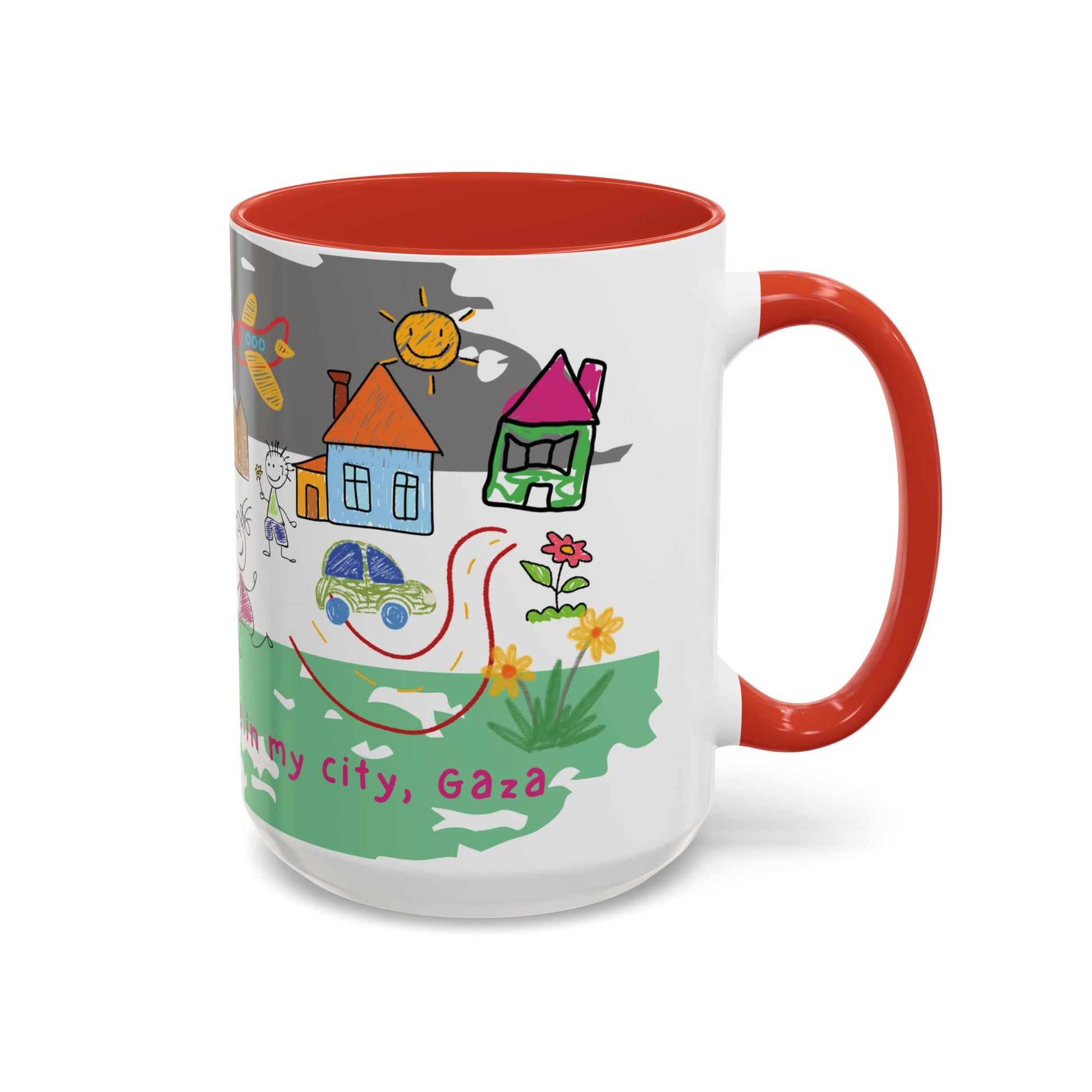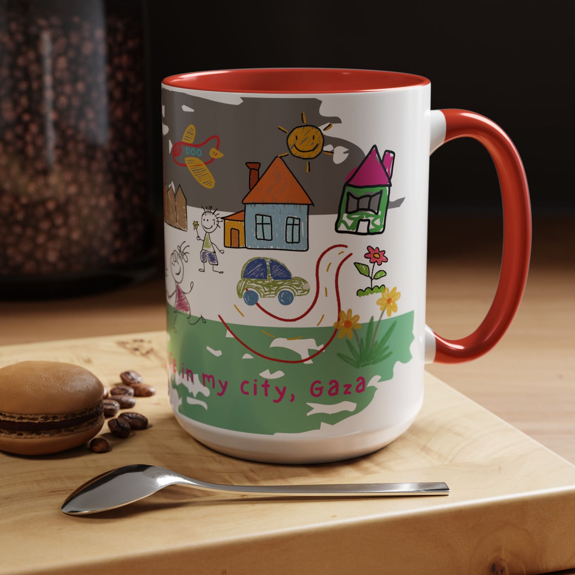 Gaza Palestine Hope - Accent Coffee Mug 15oz – Colorful Crayon Art Inspirational Cup - Child Drawing Style Ceramic Mug